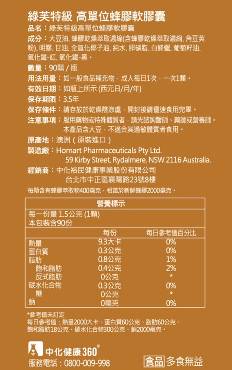 品名:綠芙特級高單位蜂膠軟膠囊